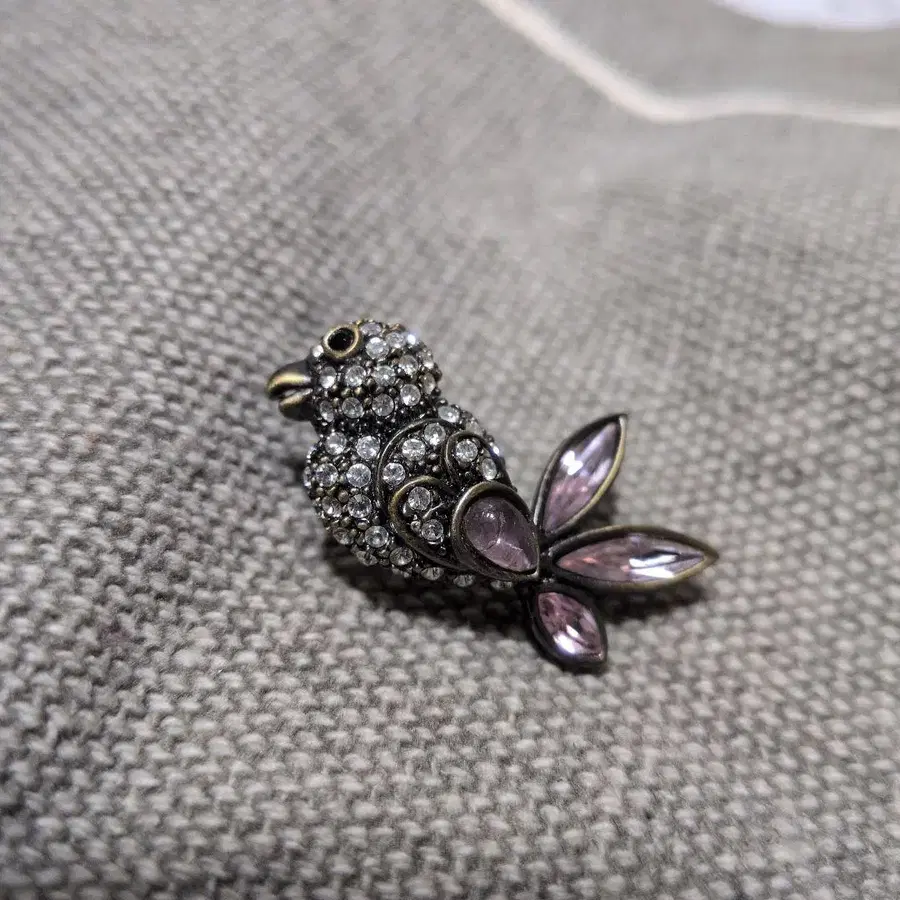 작은 새 크리스탈 브로치 큐빅 빈티지 새