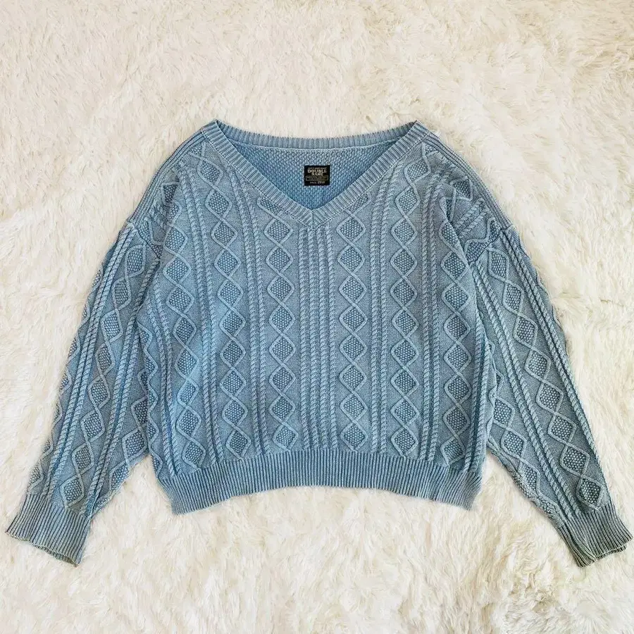 DOUBLE NAME/V넥 니트 스웨터/케이블 짜임/블루