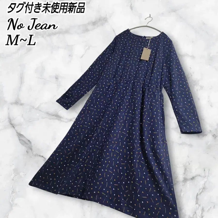No Jean 네이비 북유럽 스타일 올 패턴 하이 게이지 니트 롱 원피스