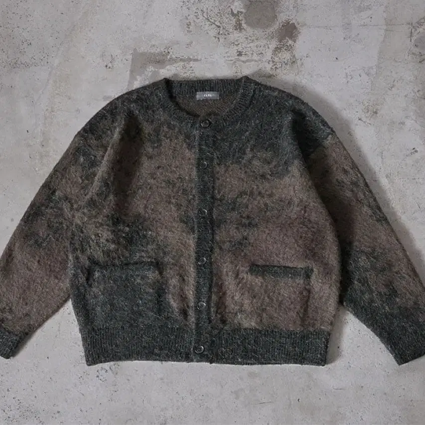 CLEL 모헤어 블렌드 샤기 디자인 크루넥 가디건