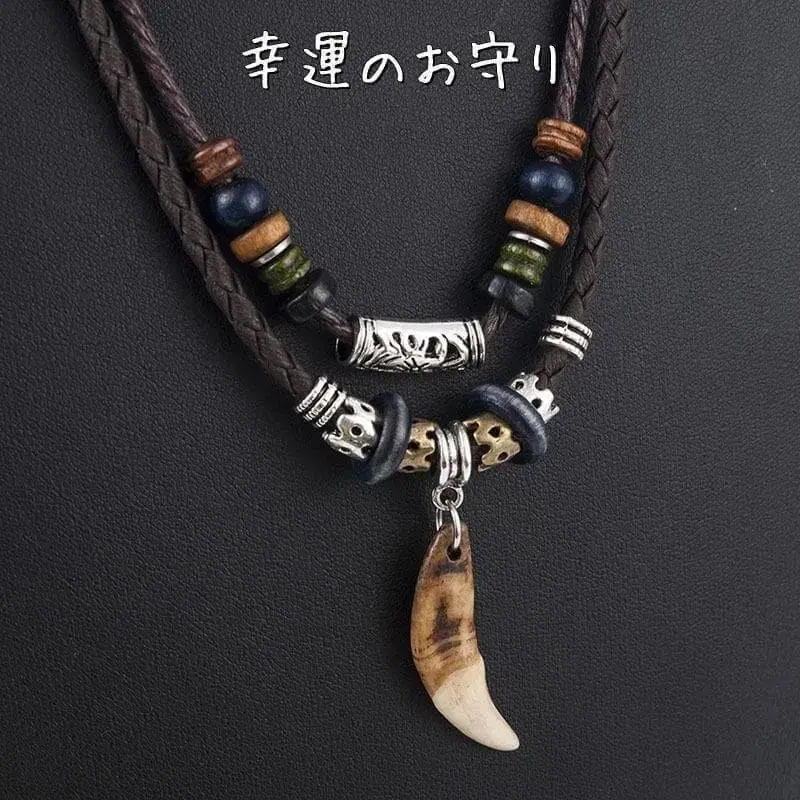2개 세트! 행운의 부적 늑대 이빨 목걸이 끈 목걸이 초커/인기/
