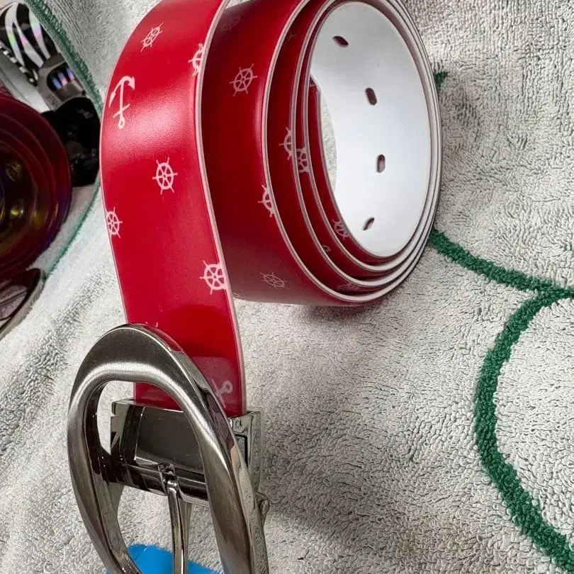 Glitters 벨트 빨간색 닻 무늬 리버서블