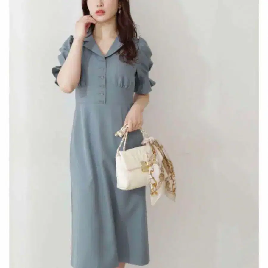 [ 상품 특징 ] 여성스러운 표정을 연출하는 오픈 카라 원피스입니다.