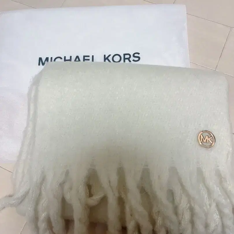 MICHAEL KORS 로고 프린지 장식 화이트 머플러 새상품급