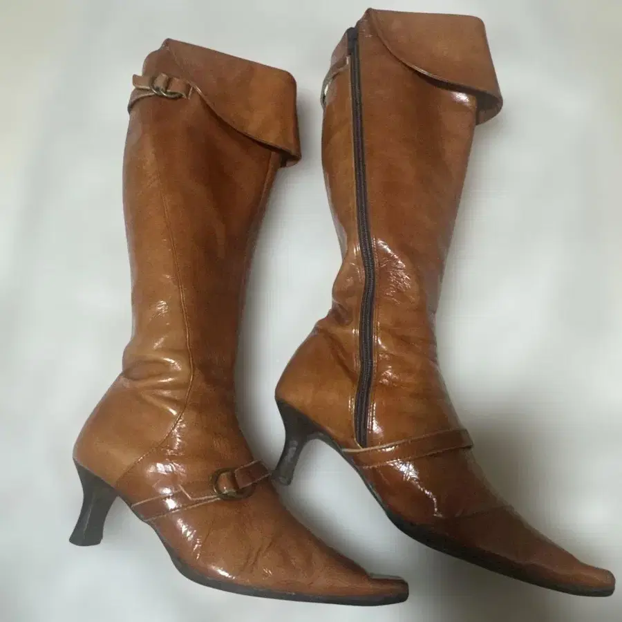 히미코 엘레강스 에나멜 천연 가죽 부츠 니하이
