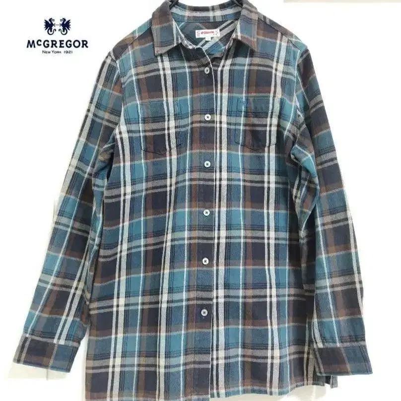 맥레거 체크 무늬 긴팔 셔츠 여성용 그린 브라운
