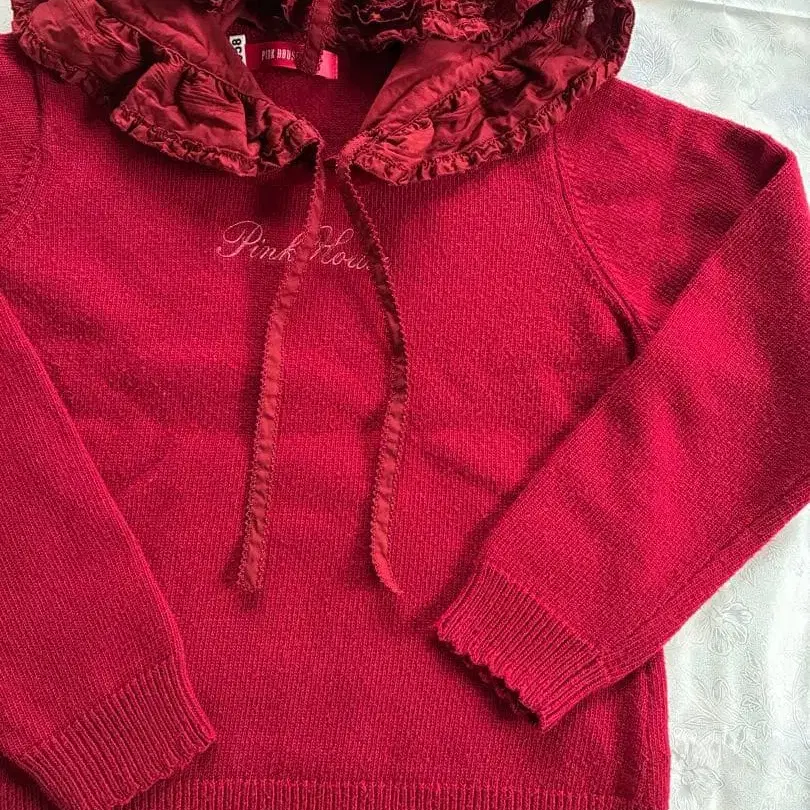 핑크하우스 로고 자수 후드 니트
