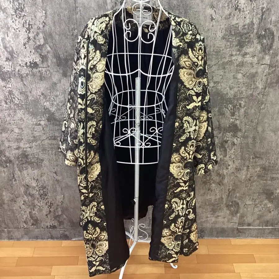 로즈버드 [ L ] 노카라 롱 코트 자카드 직물 올 패턴 자수