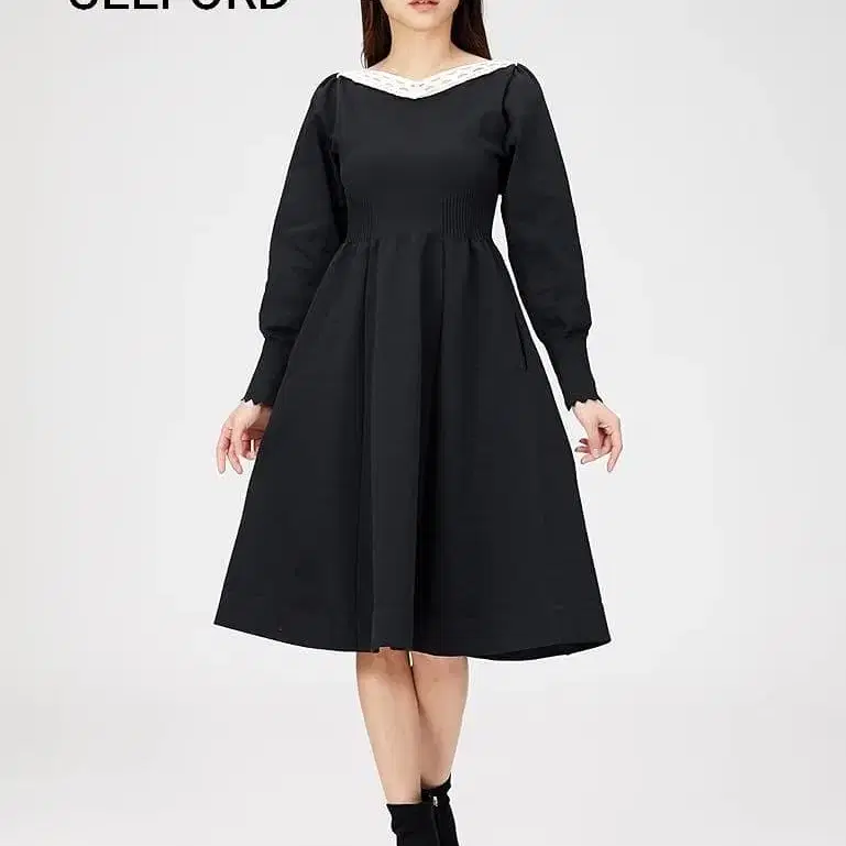 CELFORD 컷워크 홀가먼트 원피스 블랙