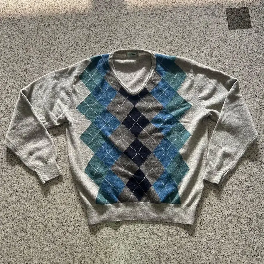 [레어] 크로커다일 아가일 니트 vintage 구제 의류 V넥 L
