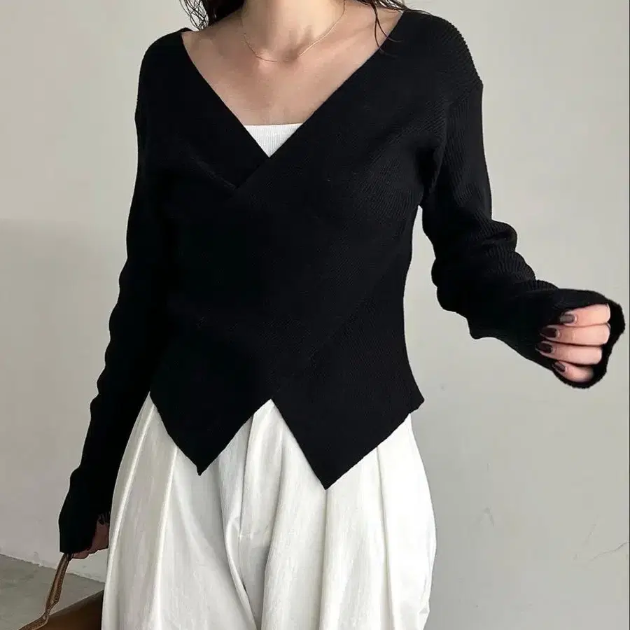 CAPRICIEUX LE'MAGE 크로스 V넥 니트 블랙