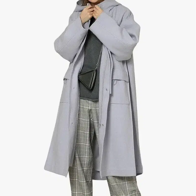 롱 코트 후드 부착 사이드 턱 아이리스 블루 KBF