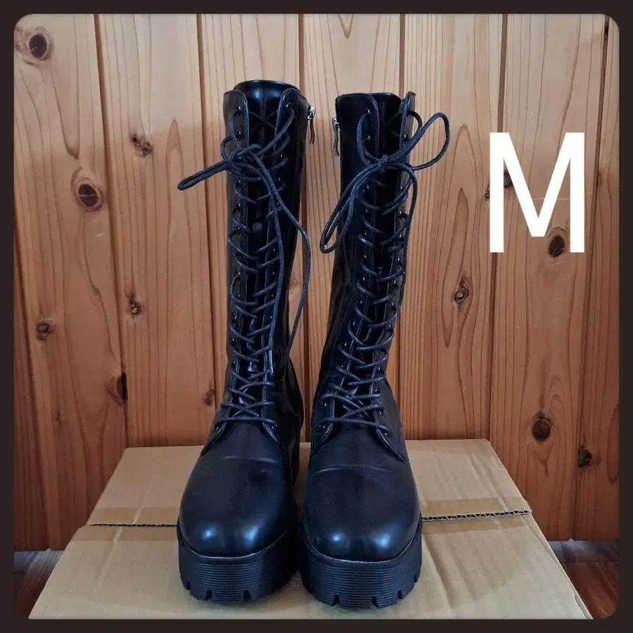 통굽 레이스업 롱 부츠 M 블랙 레이스업 부츠