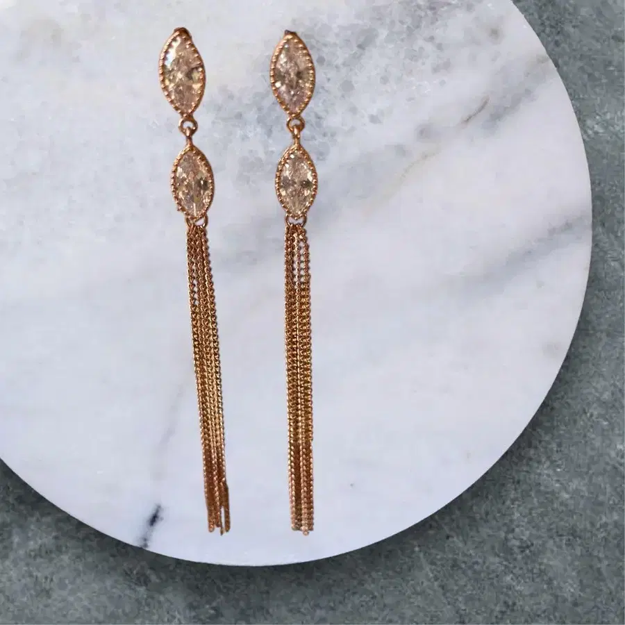 새상품 Silver PG 핑크 골드 컬러 태슬풍 체인 멋스러운 귀걸이