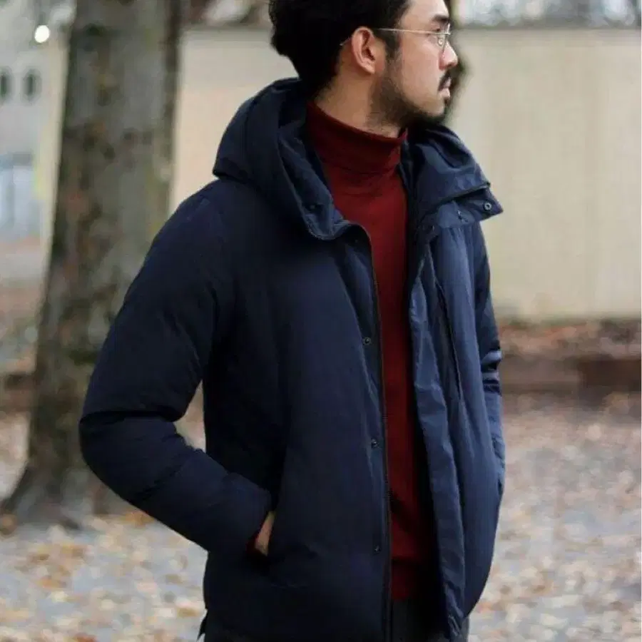 • 네이비 다운 자켓 후드 부착