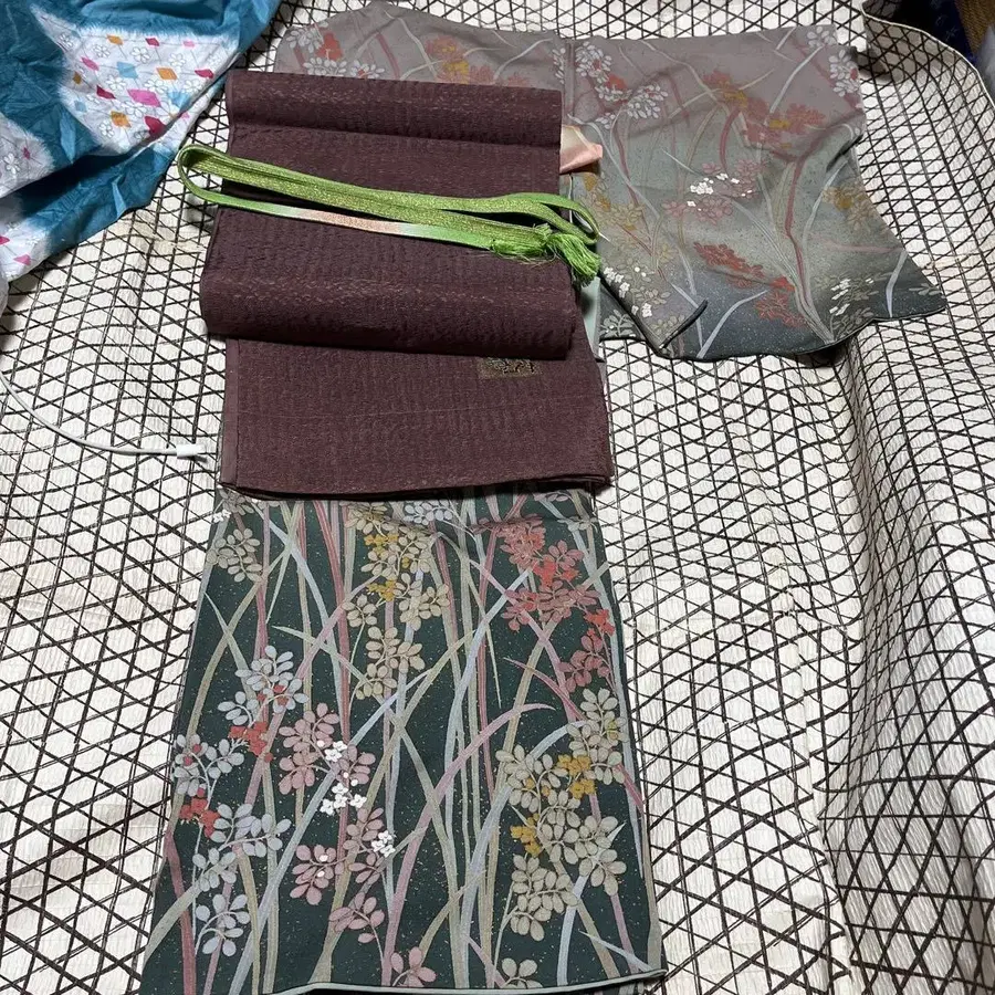 4점 (기모노, 오비, 오비 장식 천, 허리띠) 세트