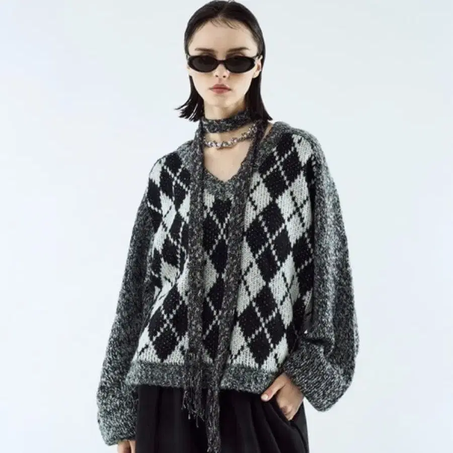 [ Argyle melange V-neck knit / 아가일 멜란지 V넥 니트 ]
