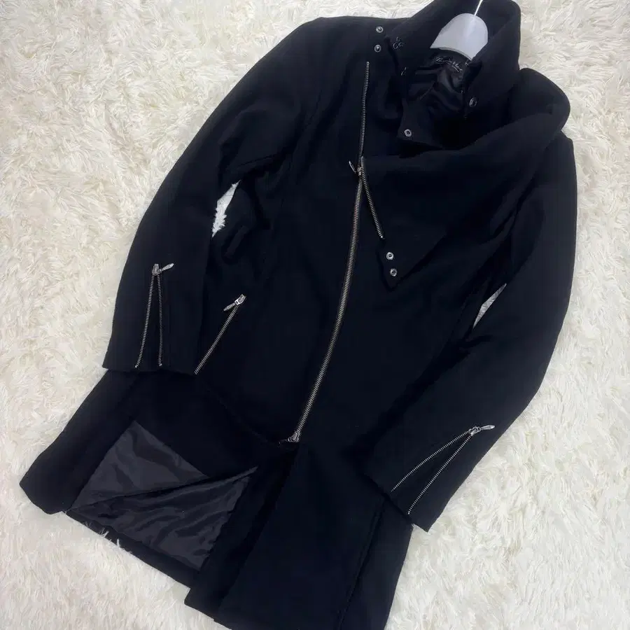토네이도 마트 비대칭 디자인 롱 코트 블랙 벨트 없음