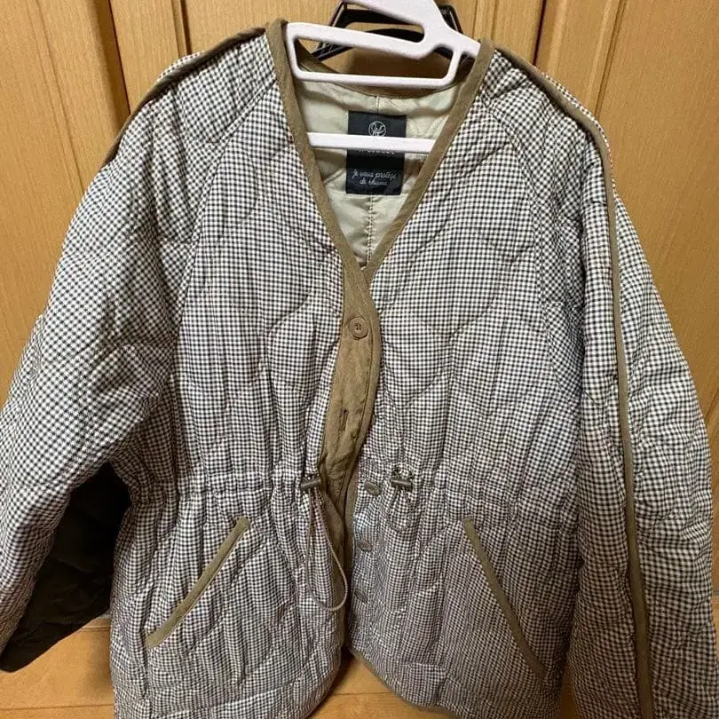 체크 무늬 퀼팅 다운 자켓