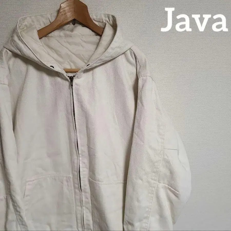 자바 Java 퀼팅 코튼 후드 부착 블루종 자켓 화이트 긴팔