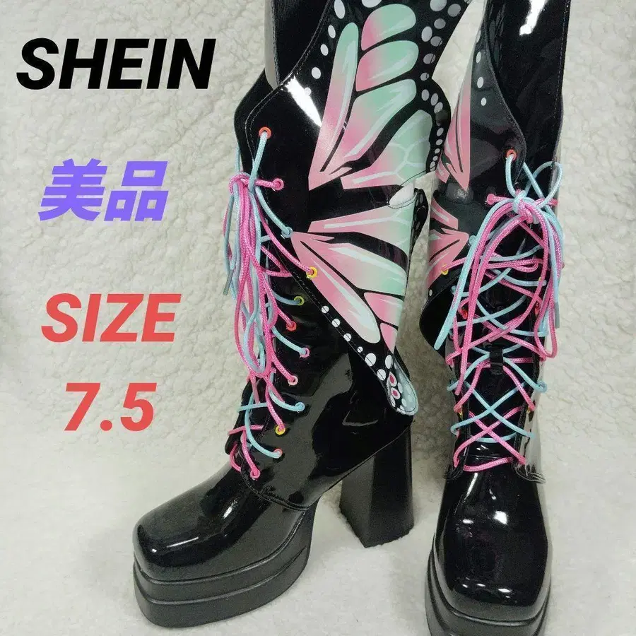 새상품급 SHEIN 쉬인 롱 부츠 나비 버터플라이 통굽 컬러풀