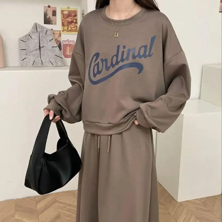 새상품 ABITOKYO 로고 프린트 종이상자 맨투맨 셋업 브라운