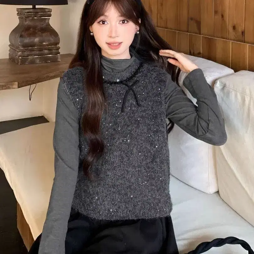 고급스러운 겨울 상의! 옷깃의 리본이 귀여운 디자인
