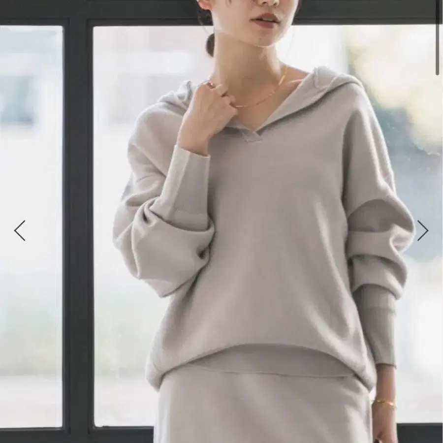 니트 특유의 탄력 있는 원단감으로 후드 부분은 입체적인 실루엣을 만들어 줍니다.