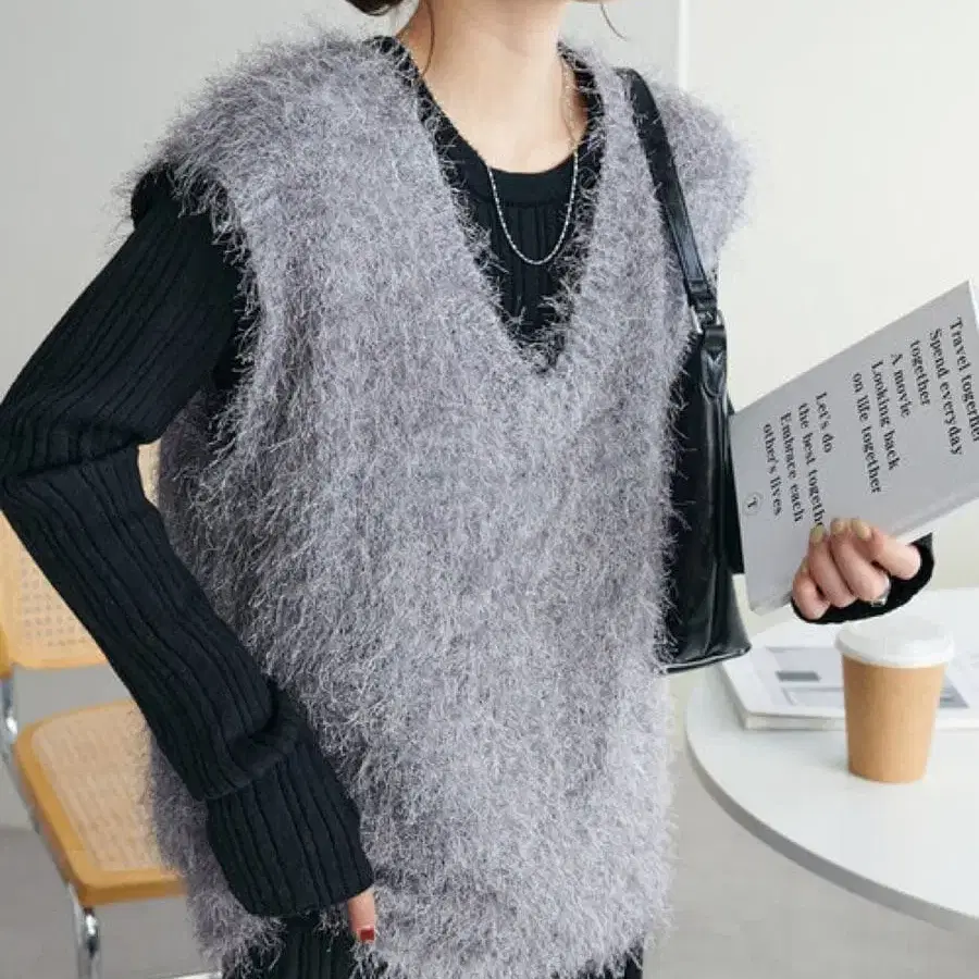 완판템 DISCOAT 프린지 V넥 베스트 그레이