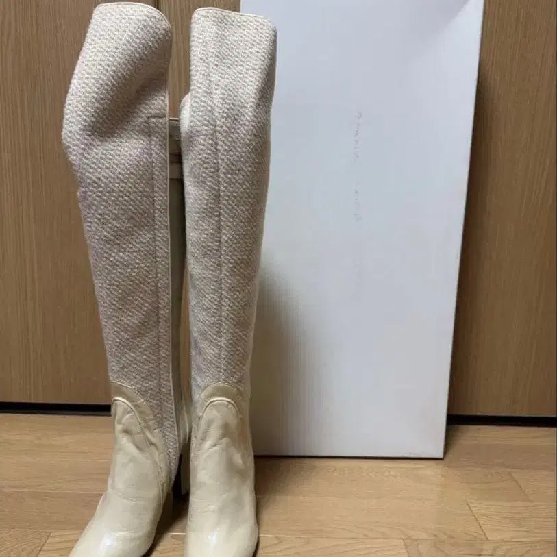미사용 Bubble n 니하이 부츠 하이힐 아이보리 사이즈 36