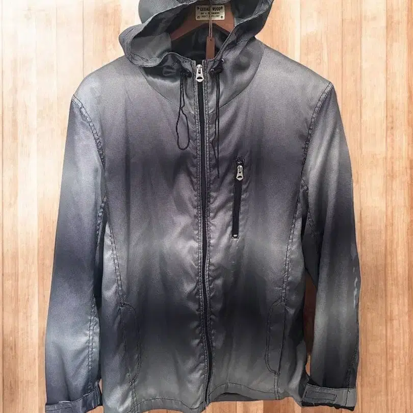 그라데이션 그레이 후드 부착 나일론 자켓