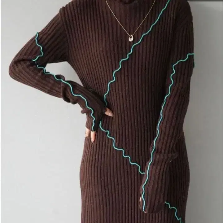 [ 새상품 미사용 ] Lumire 배색 메로우 니트 원피스/브라운
