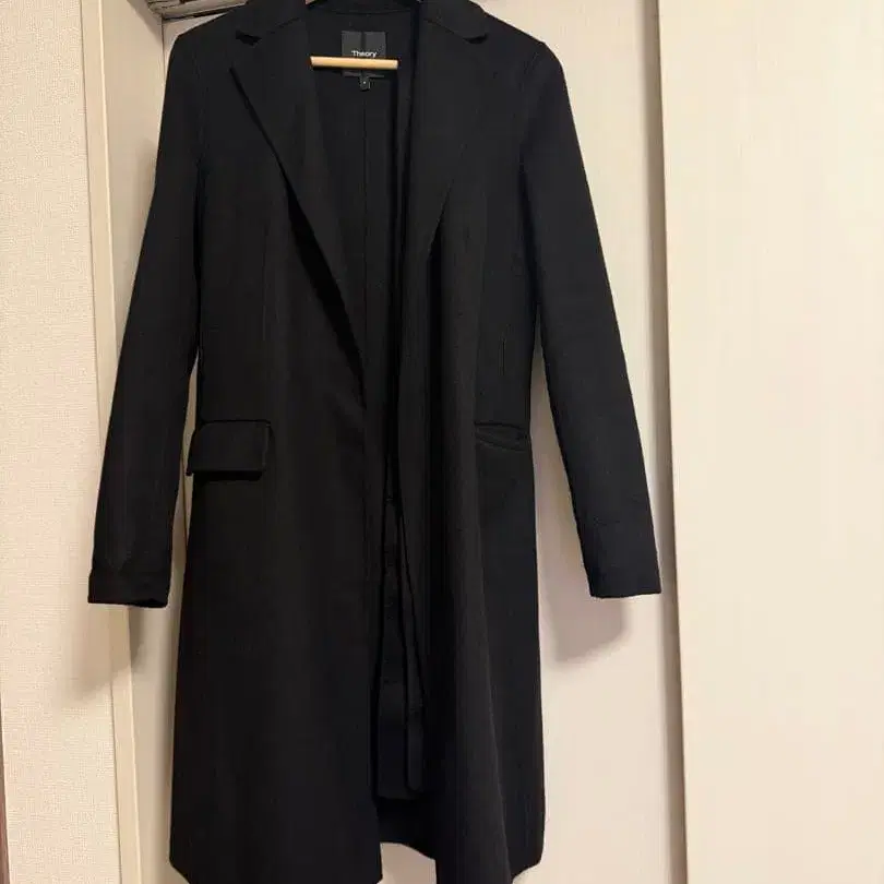 Theory 블랙 롱 코트 벨트 코트
