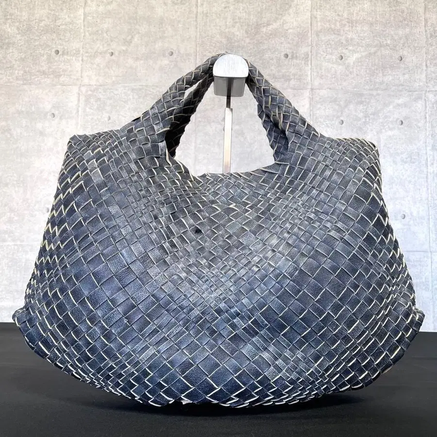 [새상품급] FALORNI 인트레차트 램 가죽 네이비 핸드백