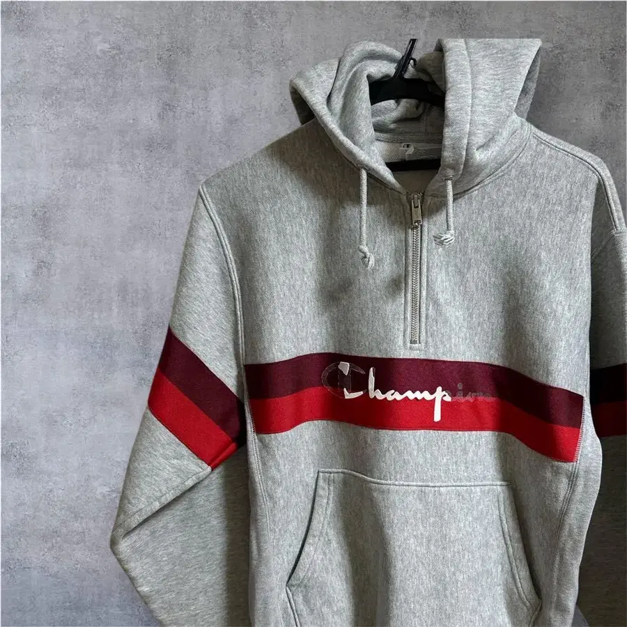 챔피언 프론트 로고 하프 지퍼 후드티 리버스 위브