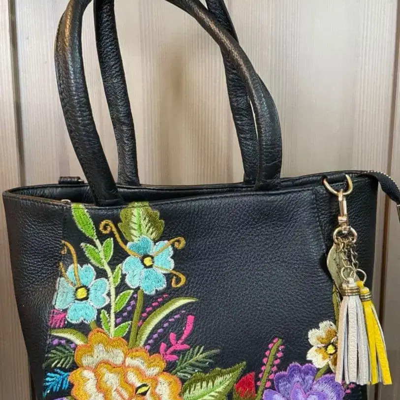 [이번 주 특별 금액] 꽃무늬 자수 블랙 토트백 태슬 포함