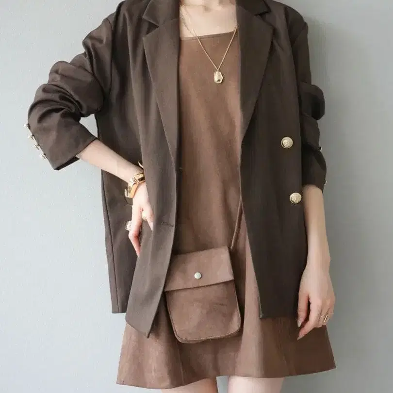 Lumier 테일러드 자켓 숄더 파우치 포함 미니 원피스