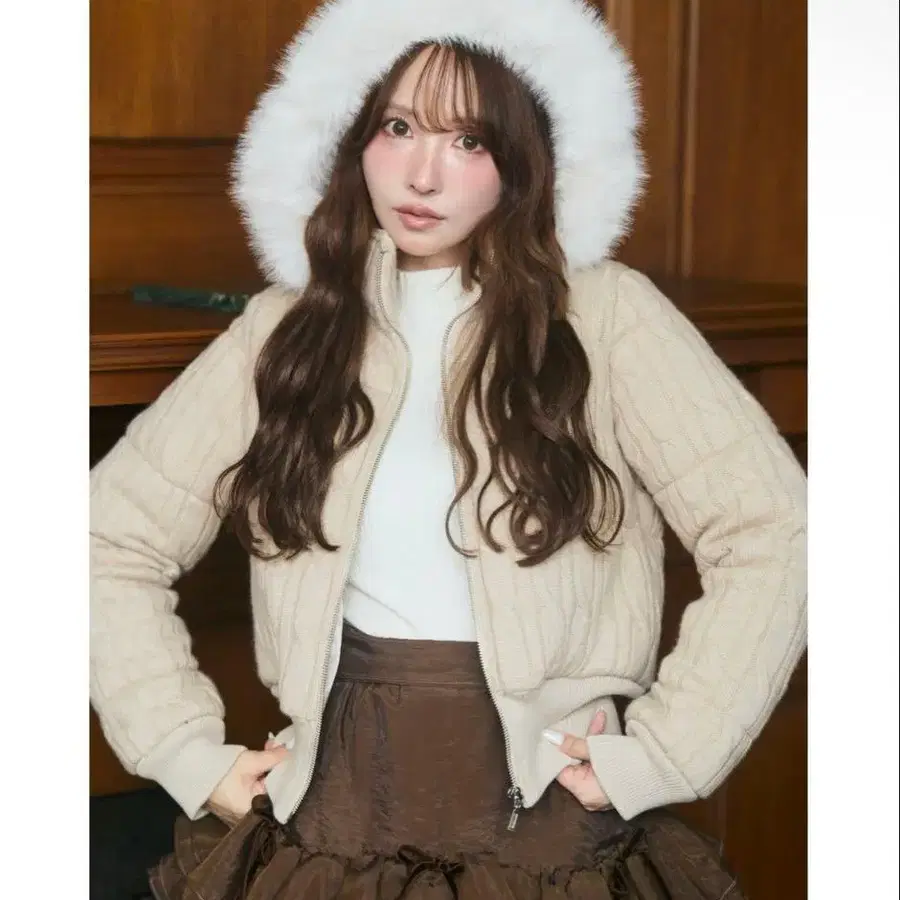 MISTREASS 미스트레아스 케이블 니트 패디드 재킷