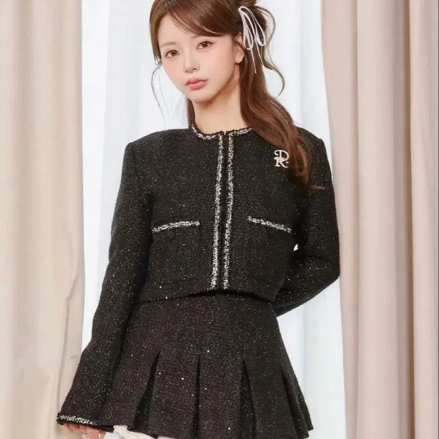 Darich 스팽글 트위드 자켓, 스커트 세트 블랙