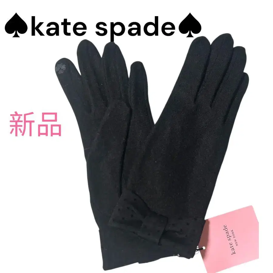 새상품 kate spade 블랙 울 장갑 도트 무늬 리본 포함