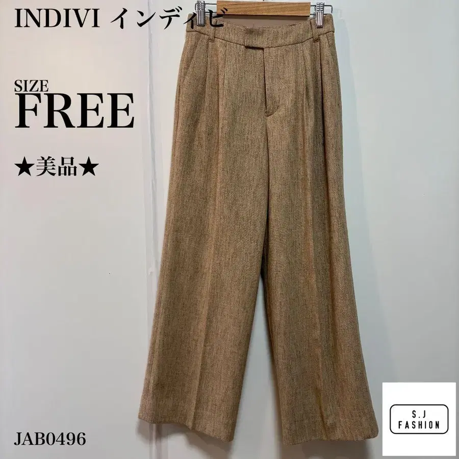 INDIVI 인디비 와이드 팬츠 울 턱 일본제 카멜 F