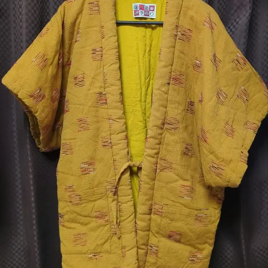 면 소재 머스타드색 겉옷 미야테즈쿠리 반텐