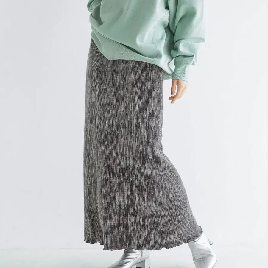 LOWRYS FARM 샤이니 벨로아 타이트 스커트 그레이