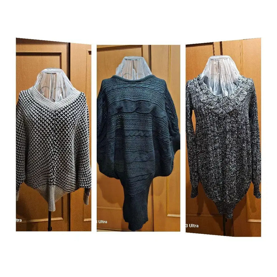 프리 사이즈 니트 3세트 긴팔 뜨개질 디자인 튜닉 스웨터