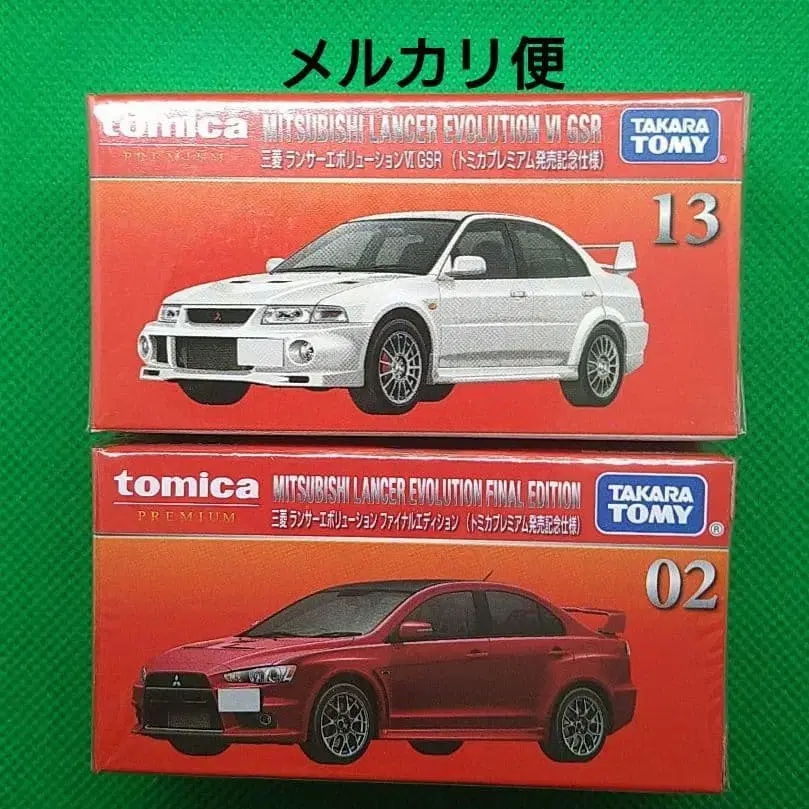 단종 토미카 프리미엄 13 미쓰비시 랜서 에볼루션 VI GSR (발매 기념 사양) 토미카 프리미엄 02 미쓰비시 랜서 에볼루션 파이널 에디션 (발매 기념 사양) 새상품 2대 세트입니다. 파일 에디션 상자 표면과 뒷면에 여러 개의 선 스크래치가 있습니다. 사진 7, 8장을 참조해 주세요. 에어캡으로 포장하여 유패킷 플러스로 보내드립니다. (안심할 수 있는 익명 배송 메루카리 택배) ※ 제조사 출하 시부터 슈링크나 상자에 스크래치 등이 있을 수 있습니다. ※ 새상품 미개봉이므로 초기 불량 등 문제가 발생할 경우, 구매자님께서 직접 제조사에 문의해 주시기 바랍니다. 낱개 판매 불가 [할인 불가] 이지만, 다른 세트와 동시 구매 시 1세트당 총액에서 300엔 할인해 드립니다. 원하시는 분은 구매 전에 댓글란에서 알려주세요 ♪ 즉시 구매 OK입니다. 타카라토미 MITSUBISHI 한정판 란에보 단종 절판