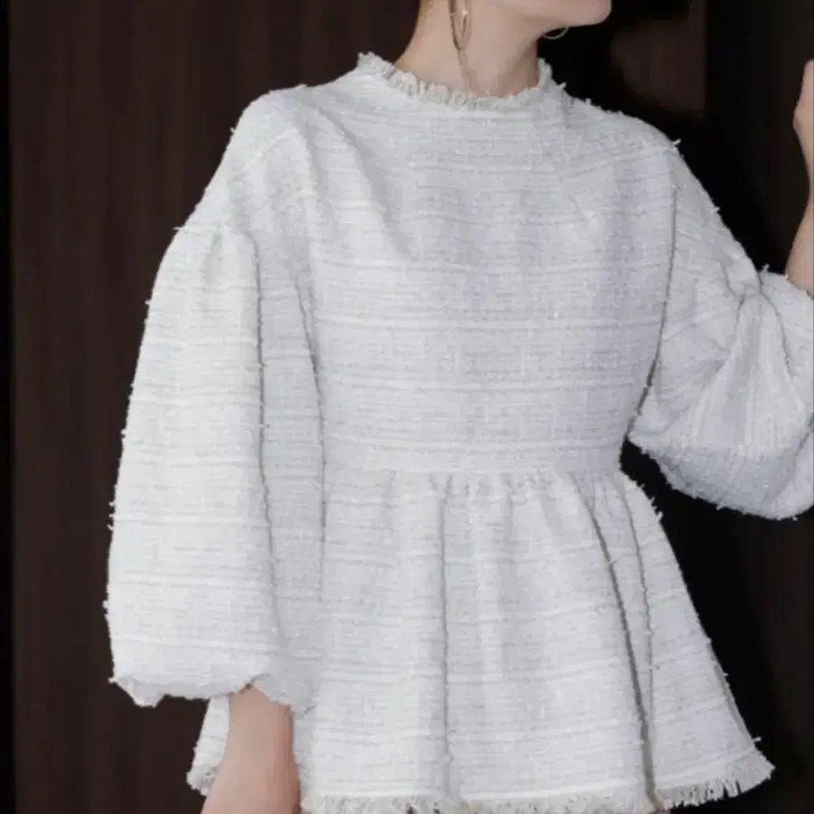 anuans 오리지널 트위드 벌룬 슬리브 블라우스