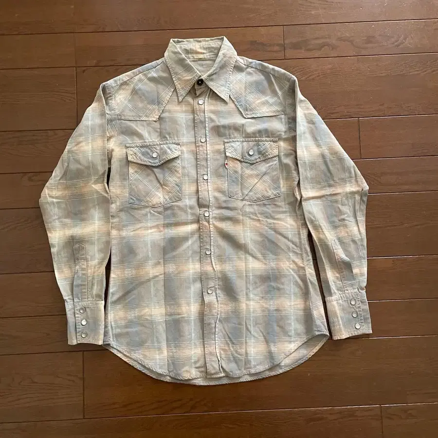 50년대부터 60년대 무렵의 빈티지 웨스턴 셔츠입니다. 웨스턴 셔츠에서는 드문 옴브레 체크로, 정말 멋진 아이템입니다. 체크 무늬 안에 자수로 무늬가 새겨진 정교한 디자인입니다. 소재도 코튼이라 레이온 등에 비해 다루기 쉬운 점도 포인트입니다. 택이 없어져 버렸지만, 가슴에는 토마토 탭이 달려 있습니다. 스냅 버튼은 SCOVILL입니다. 옷깃의 모양은 이 시대 특유의 잘록한 형태를 하고 있습니다. 70년대가 되면 직선적이고 큰 옷깃이 되기 때문에 이 시대 정도까지의 것이 멋지게 입기에는 추천합니다! 빅 사이즈라면 상당히 고액이 되어 버립니다만, 사이즈가 작기 때문에 저렴하게 나왔습니다. 여성분이나 작은 체구이신 분, 슬림하신 분께 추천합니다! 전체적으로 녹슨 얼룩 같은 얼룩이 곳곳에 있지만, 착용에는 지장이 없습니다. 개인적으로는 이 분위기야말로 빈티지 가공으로는 표현할 수 없는 분위기라고 생각합니다! 오래된 물건이지만 데미지 등은 없으므로, 아직도 오래 착용할 수 있습니다. 잘 부탁드립니다! 사이즈 표기 없음 어깨 너비 41cm 가슴 너비 48cm 기장 67cm 소매 길이 56cm