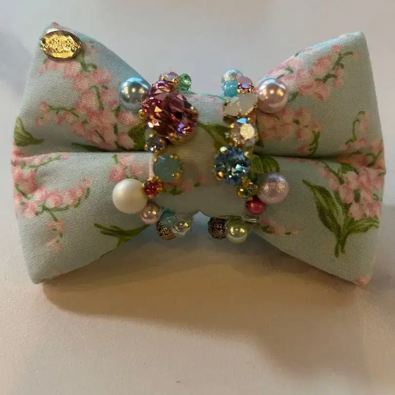 꽃무늬 리본 머리핀 스카이블루 fitafita