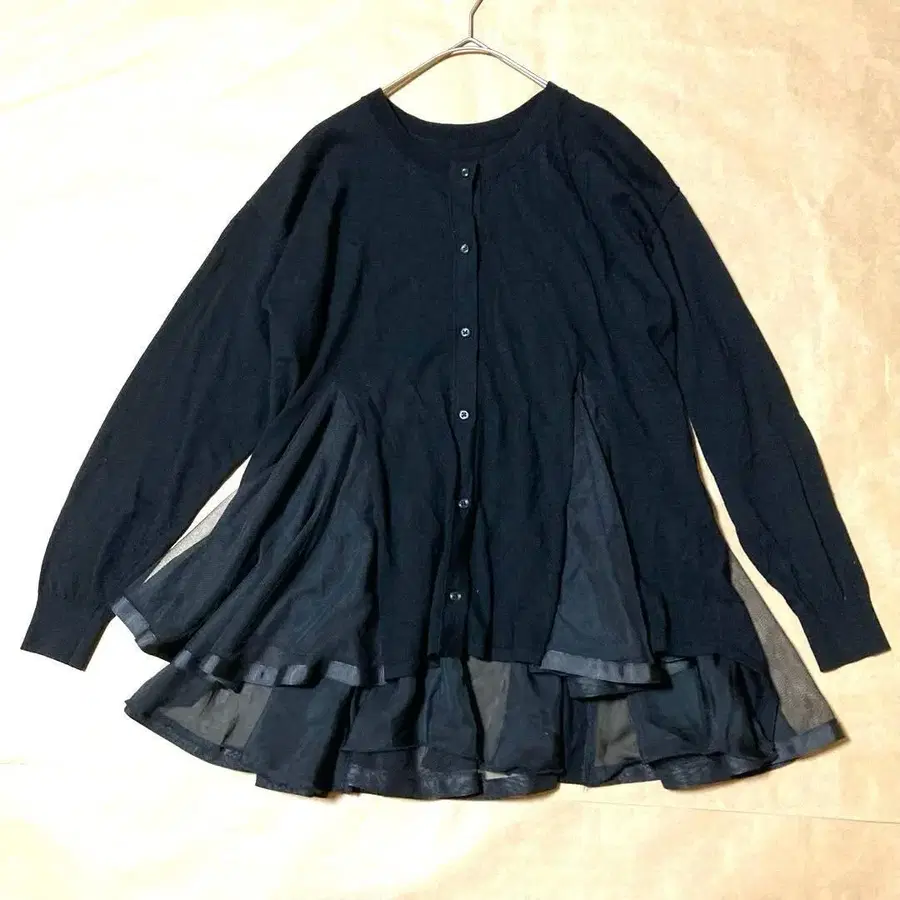 [디자인 아에라] 블랙 긴팔 가디건 M 밑단에 튤이 퍼지는 디자인