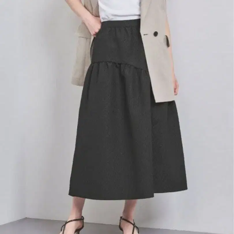 UNITED ARROWS AIRY 자카드 캉캉 스커트 블랙